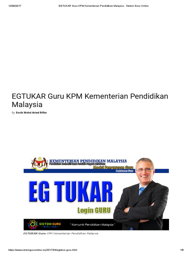 Daripada murid yang beliau sangka. Guru yang sedang bercuti tanpa gaji / separuh gaji. Seperti sedia maklum, keputusan eg tukar akan diumumkan pada 30 mei 2017. Umie akan cuba paparkan maklumat anda. Eg tukar dibuka setahun sekali.
