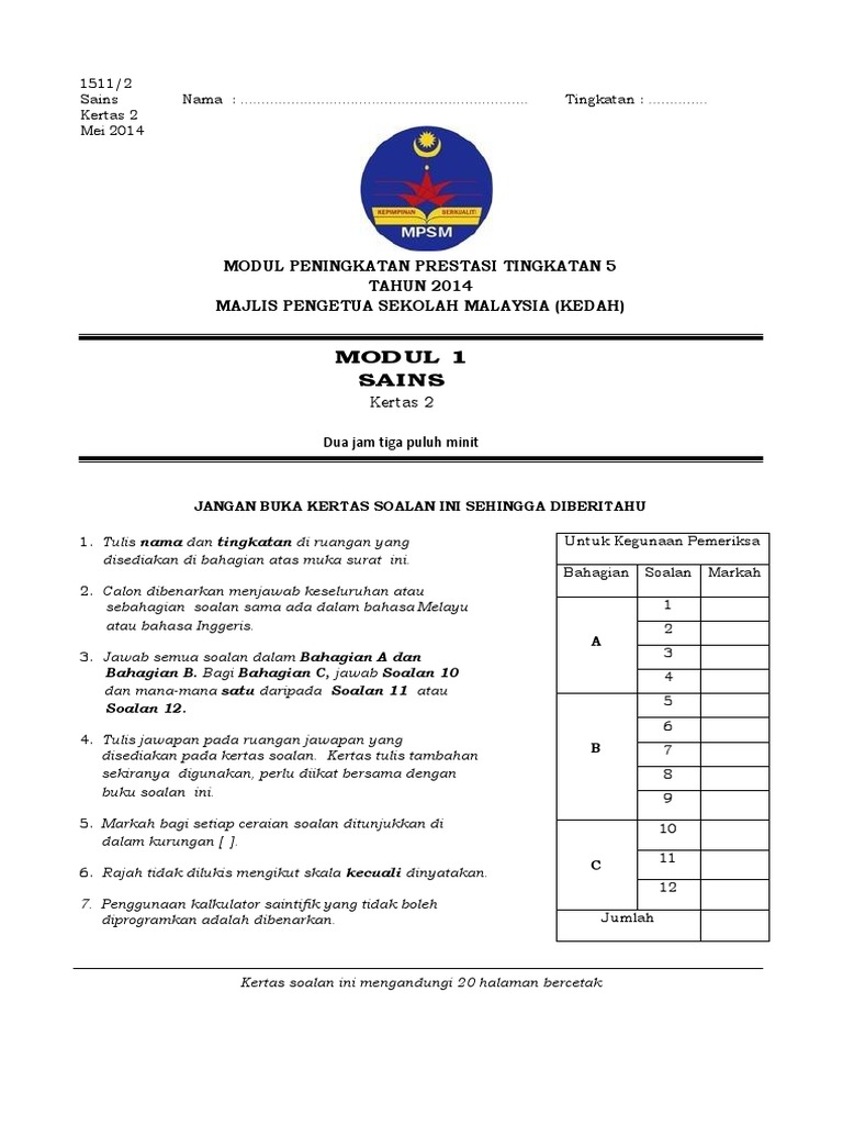 Related : Contoh Soalan Sains Tingkatan 4 Kertas 2 - Soalan sains tahun 4 kertas 2 ujian mac..